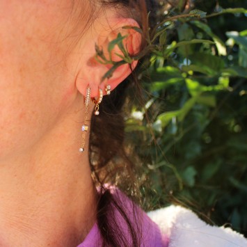 Subtile et élégante, cette petite créole vendu à l'unité se compose d'oxydes étincelants et d'un petit pendant zircon rond. Idéale pour créer une asymétrie tendance, remplacer une boucle perdue ou composer un look personnalisé.